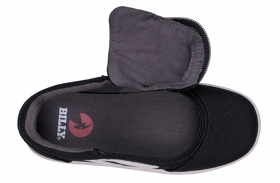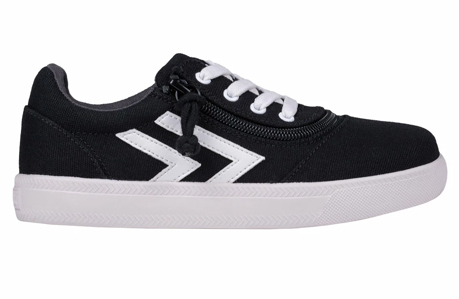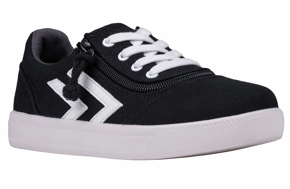 Inspired by a core-skate look, the Black/White BILLY CS Sneaker Low Tops are sure to deliver. These trending kicks embrace nostalgia, yet remain true to current style. Coming with functional laces for a custom fit, removable insoles for added depth, and a wraparound zipper for unmatched convenience, youโre going to feel good when youย Step In!