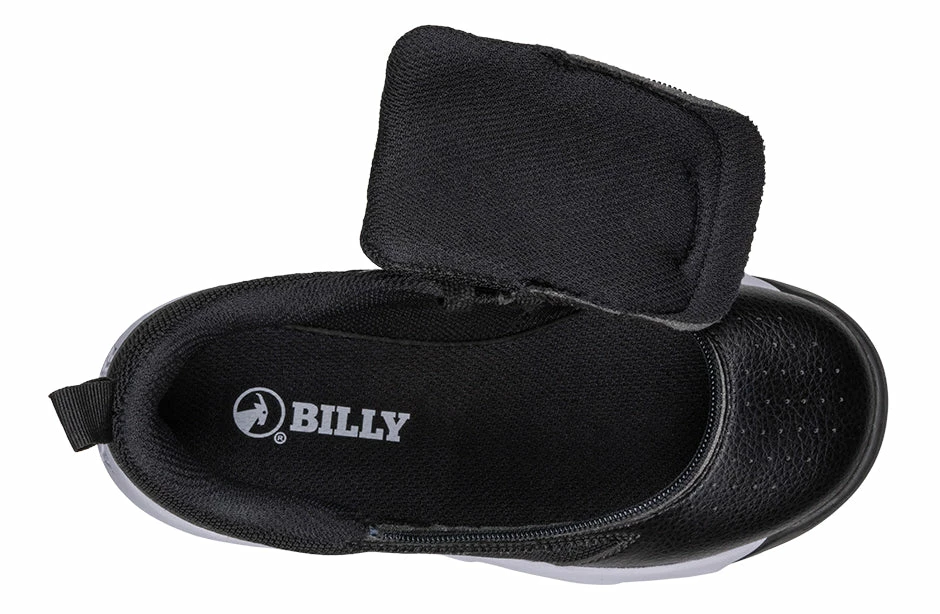 Black/White BILLY Sport Court Athletic Sneakers provide that little something your kiddo may be looking for both on and off the court. The faux leather upper gives shoe durability. The padded inner lining gives added comfort. And the short-wrap zipper configuration makes each shoe easy to put on and take off. Enjoy!