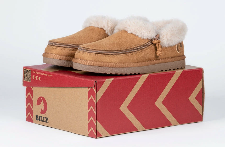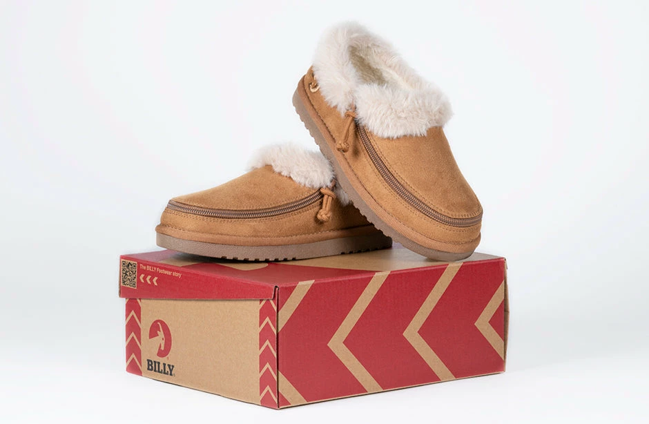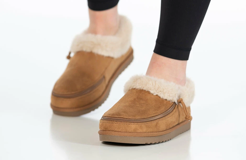 Nothing gets more cozy for the feet than theΒ Chestnut BILLY Cozy Slippers. Easy on. Easy off.Β Β Step In!Β to coziness. They are perfect for those chilly moments around the house. Enjoy!Β