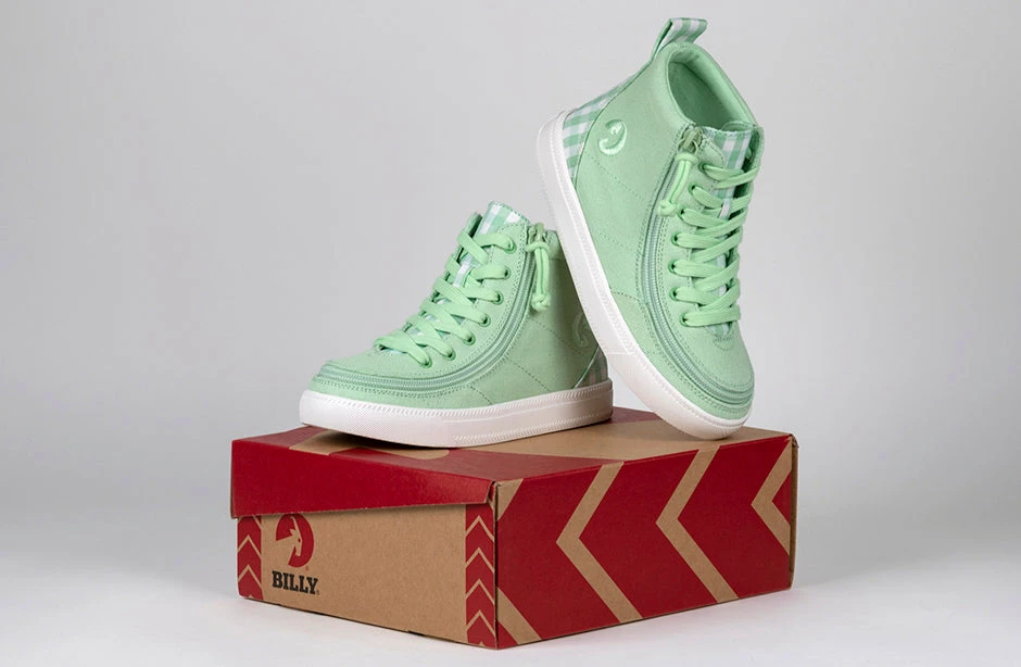 A little gingham in your wardrobe? Yes please! These Green Gingham BILLY Classic Lace High Tops bring a fresh look to a classic style.ย