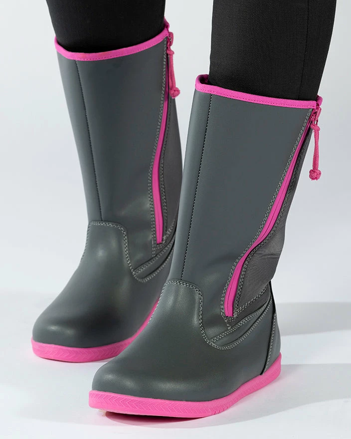 No matter the weather, it is great to stay active. And what better way to keep the feet dry than with the Grey BILLY Rain Boots! These water resistant beauts feature two straight zippers letting you step in and out easier and get you out and about faster. Enjoy!