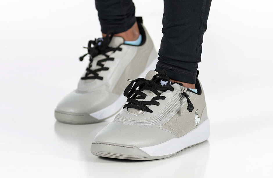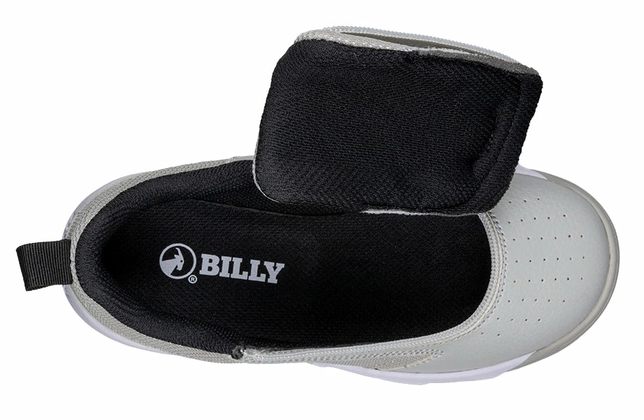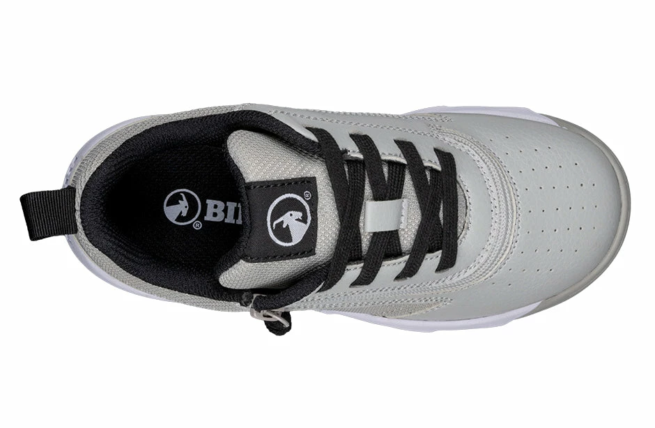 Grey/Black BILLY Sport Court Athletic Sneakers provide that little something your kiddo may be looking for both on and off the court. The faux leather upper gives shoe durability. The padded inner lining gives added comfort. And the short-wrap zipper configuration makes each shoe easy to put on and take off.ย ย Enjoy!