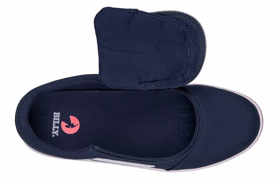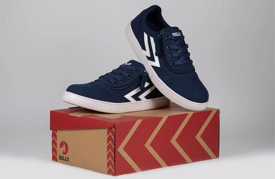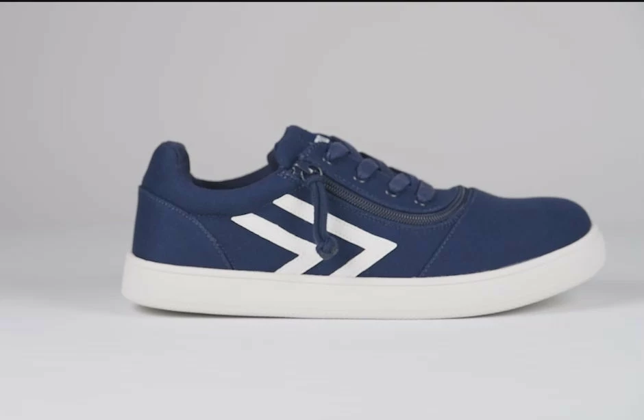 Inspired by a core-skate look, the Men’s Navy/White BILLY CS Sneaker Low Tops are sure to deliver. These trending kicks embrace nostalgia, yet remain true to current style. Coming with functional laces for a custom fit, removable insoles for added depth, and a wraparound zipper for unmatched convenience, youโre going to feel good when youย Step In!