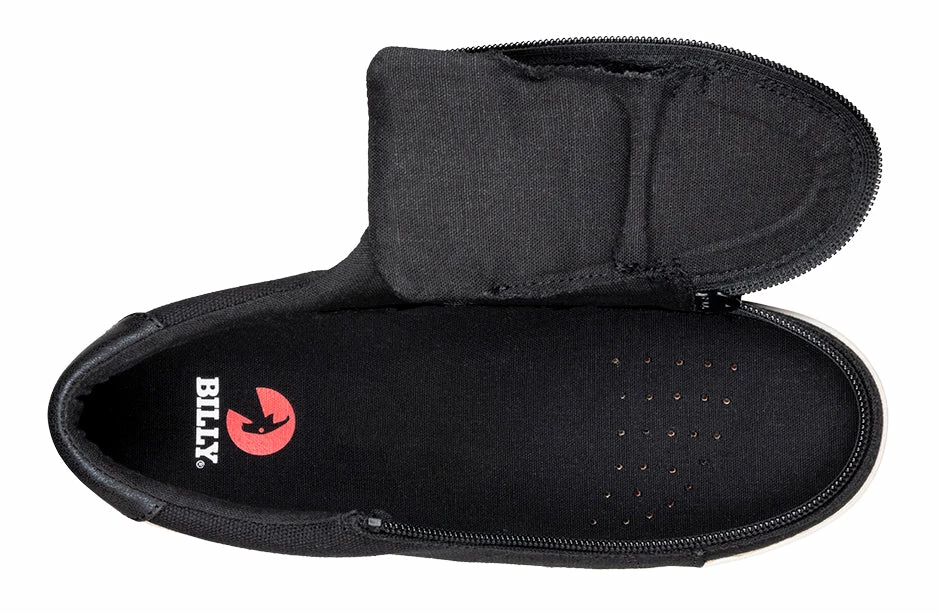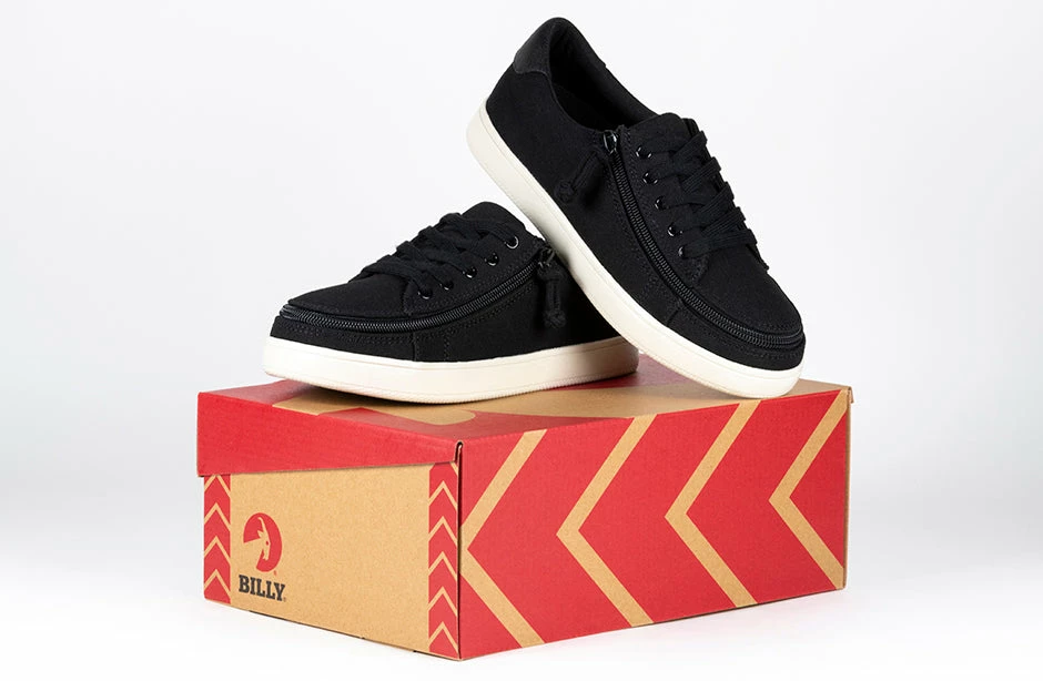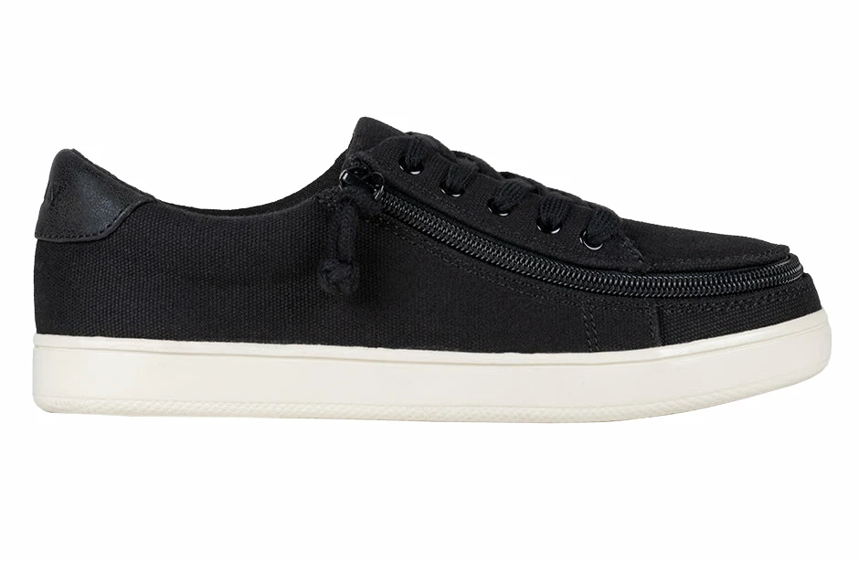 A classic look with universal style. Combining fashion with function, step in to your shoes unobstructed in seconds. These Women’s Black Canvas BILLY Sneaker Low Tops have a soft feel and feature a highlight at the heel collar for some added contrast. Use the functional laces to get the fit right, and then go with the wraparound zipper henceforth.ย And with the multi-density foam and silica gel insoles, you’ll have cushion where you want it and support where you need it.ย Coming in a B-width for medium and D-width for wide, the sizes start at a US Women’s 6 and go to a US Women’s 11, with 1/2 sizes through size 10. Enjoy!