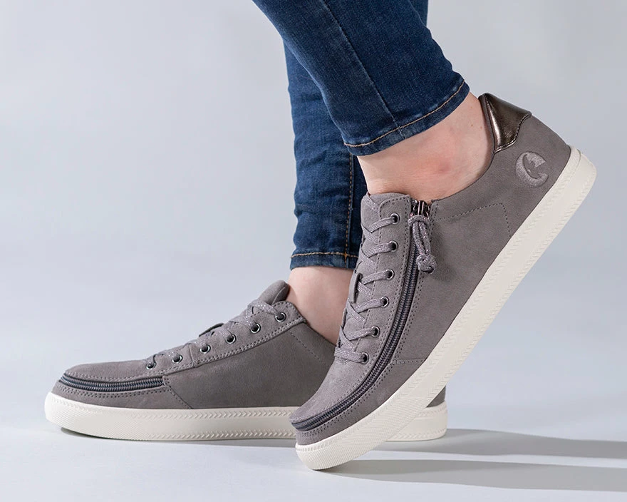 A classic look with universal style. Combining fashion with function, step into your shoes unobstructed in seconds. These faux-leatherΒ beauts have a soft suede feel and feature a metallic highlight at the heel collar for some added bling. Use the functional laces to get the fit right, and then go with the wraparound zipper henceforth. Durable rubber outsoles and cushioned removable insoles will provide all day comfort. You cannot go wrong! Sizes range from US Women’s 6 to US Women’s 11, with 1/2 sizes through size 10.