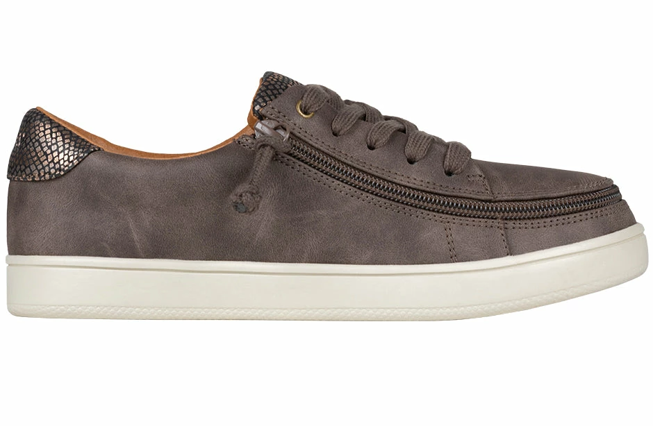 A classic look with universal style. Combining fashion with function, Step In! to your shoes unobstructed in seconds. These faux nubuck Women’s Espresso BILLY Sneaker Lace Low Topsย have a soft feel and padded collar for extra comfort. Use the functional laces to get the fit right, and then use the wraparound zipper henceforth. And with the multi-density foam and silica gel insoles, you’ll have cushion where you want it and support where you need it. Enjoy!